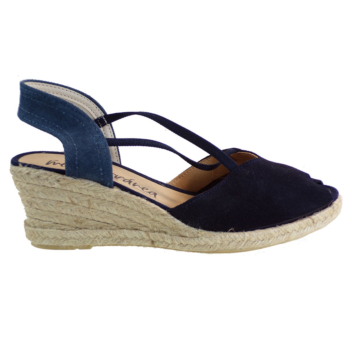 Medilerrarea Γυναικεία Πέδιλα Εσπαντρίγιες 61307001 Μπλέ Δέρμα Καστόρι