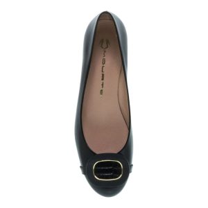 MOURTZI Γυναικεία Δερμάτινα Παπούτσια Μπαλαρίνες 3/301108 Μαύρο Δέρμα