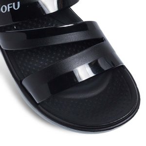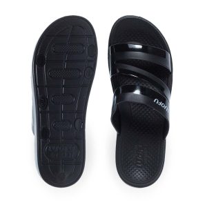Μονόχρωμες γυναικείες σαγιονάρες θαλάσσης με λουριά που αγκαλιάζουν το κουντεπιέ σας. Είναι κατασκευασμένα από πλαστικό με συνθετική σόλα που δεν γλιστράει. Λεπρομέρείες από συνθετικό λουστρίνι στα λουριά. Καθαρίζουν εύκολα και έχουν εύκολη εφαρμογή.
