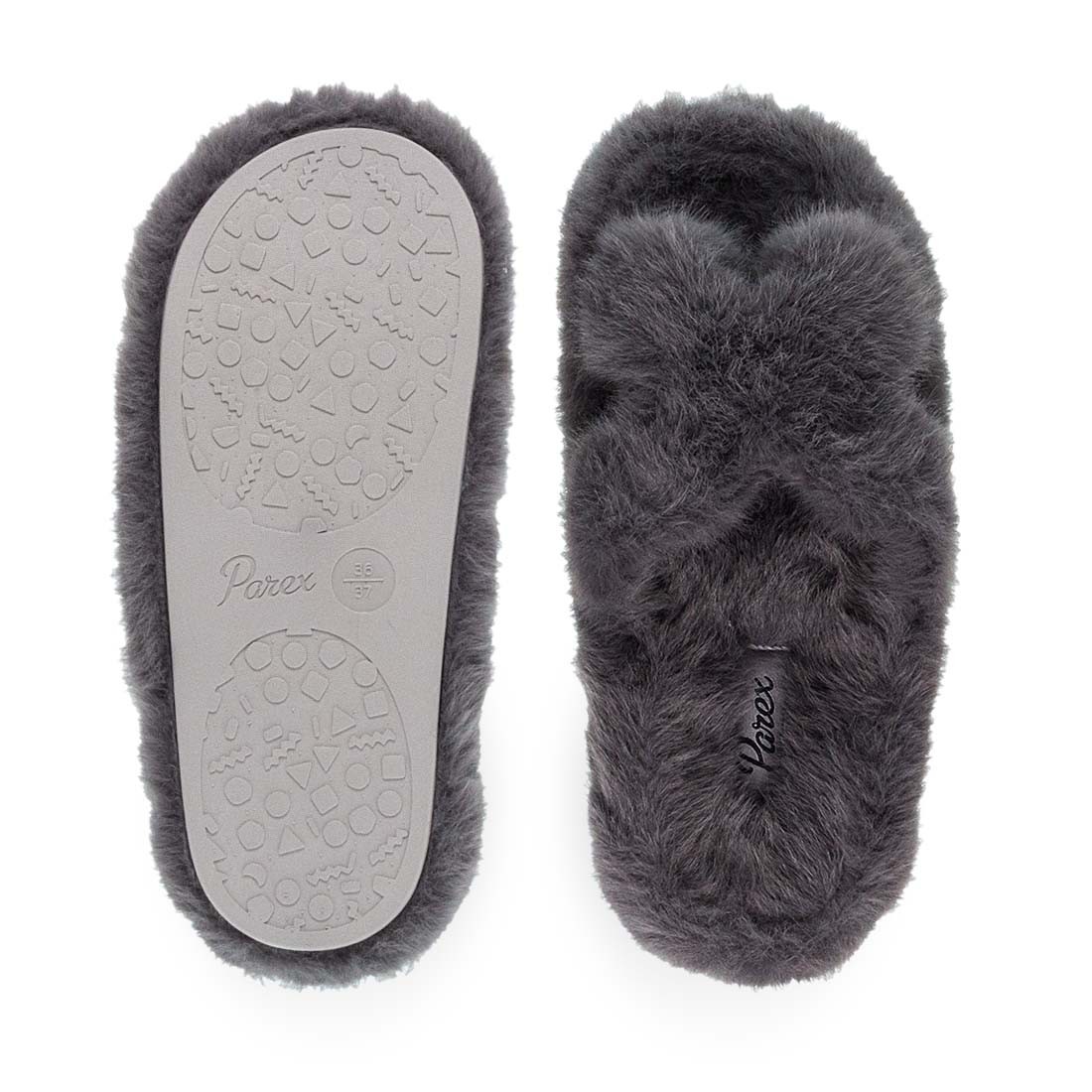 Γυναικείες,, υφασμάτινες παντόφλες σπιτιού Parex Γυναικείες παντόφλες σπιτιού Parex. Γυναικείες ανοιχτές παντόφλες Parex με χιαστί σχέδιο και απαλή γούνα. Άνετες και fashion-forward.