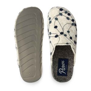 Γυναικείες παντόφλες σπιτιού της εταιρείας PAREX. . από ύφασμα-τσόχα με σχέδια στο επάνω μέρος. Μαλακός εσωτερικός πάτος και σόλα αντιολισθητική που αγκαλιάζει το πέλμα για πιο σταθερό βάδισμα.